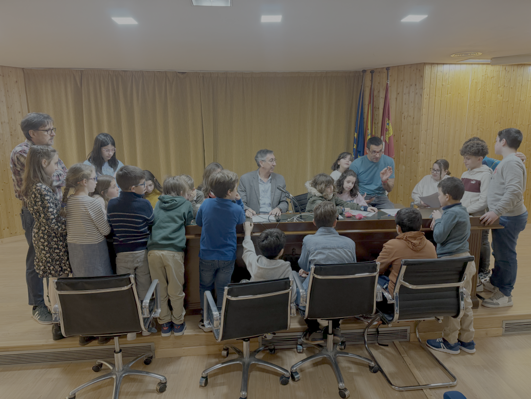 Tras la inauguración de la exposición, parte del alumnado grabó precisamente un nuevo episodio de “La puerta azul” con la participación del delegado provincial de Educación, Cultura y Deportes, José Jesús Caro Sierra. Durante la conversación, los niños y niñas mostraron una curiosidad amplia y espontánea, con preguntas sobre el número de alumnos y alumnas que hay en la provincia, la cantidad de colegios e institutos, la realidad de los centros con muy poca matrícula —como los de pequeñas localidades—, la organización de sus clases o cómo era la escuela en la infancia del propio delegado.