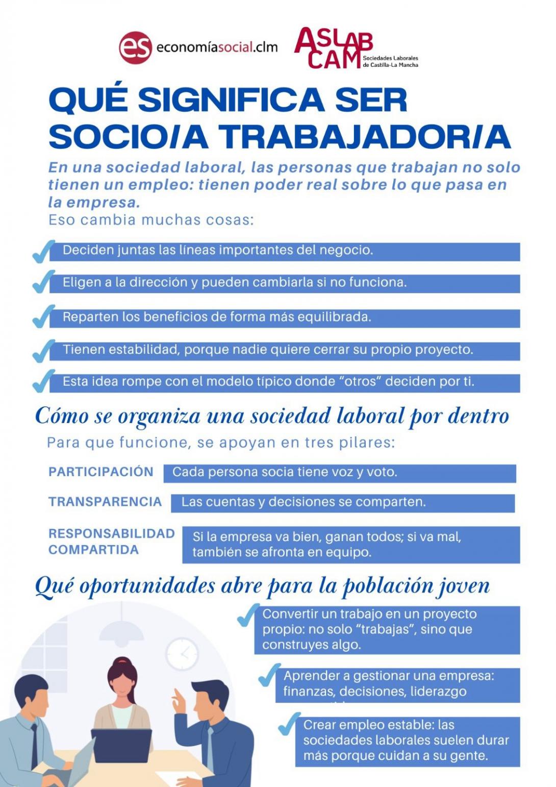 Con la finalidad de fomentar el interés de la juventud castellanomanchega por el modelo de empresa de la economía social responsable, inclusivo y sostenible, y capaz de crear y mantener empleo de calidad y saludable, la Consejería de Educación, Cultura y Deportes, junto con la Consejería de Economía, Empresas y Empleo de Castilla-La Mancha presentan, para el curso 2025/2026, las bases del I Concurso sobre Economía Social: “DESCUBRE Y COOPERA”: Explora y conoce las cooperativas y sociedades laborales de nuestra Región.