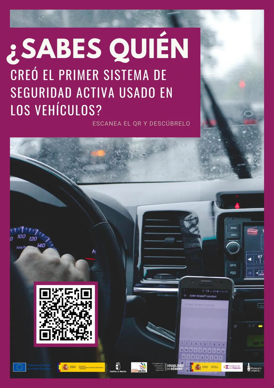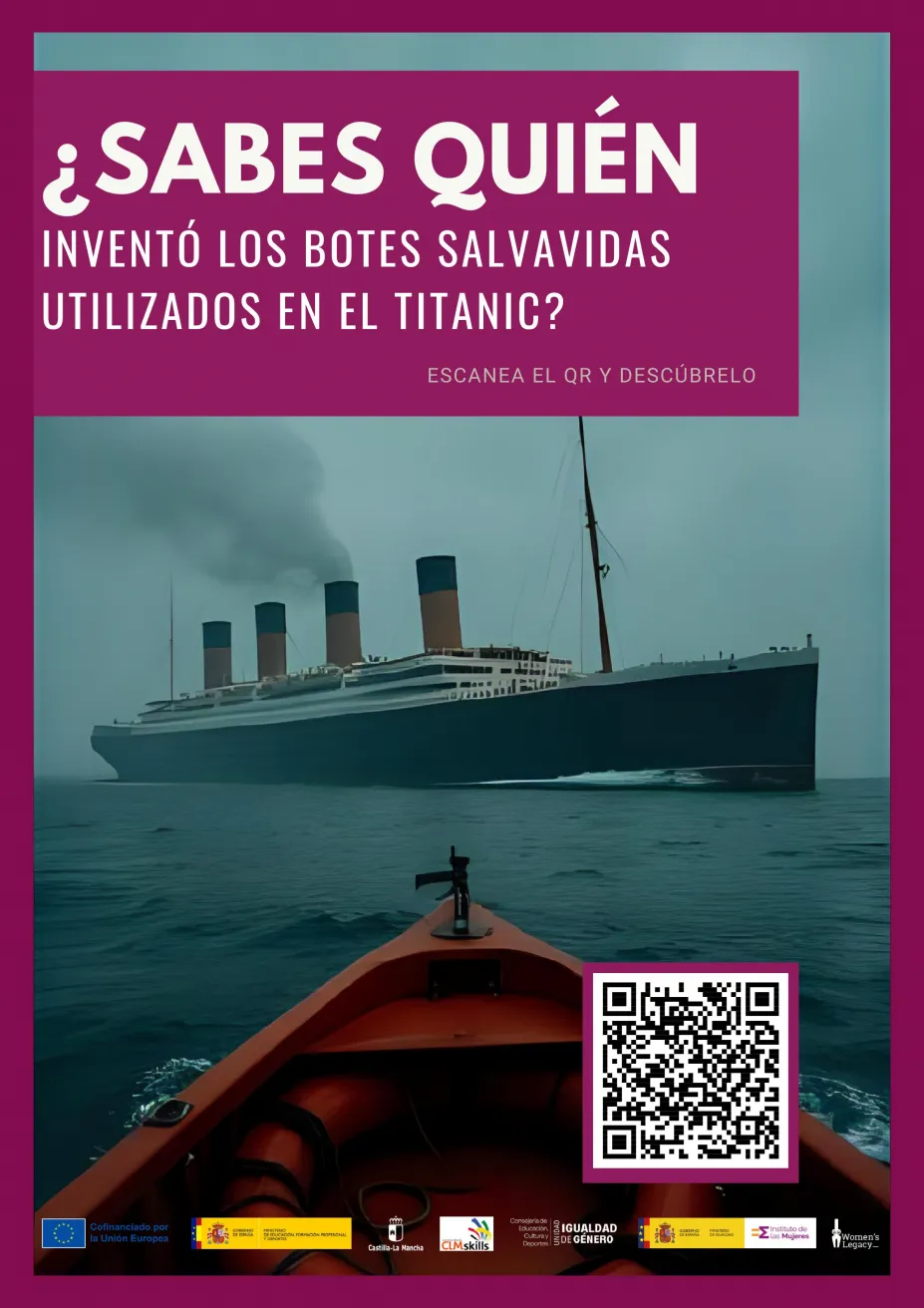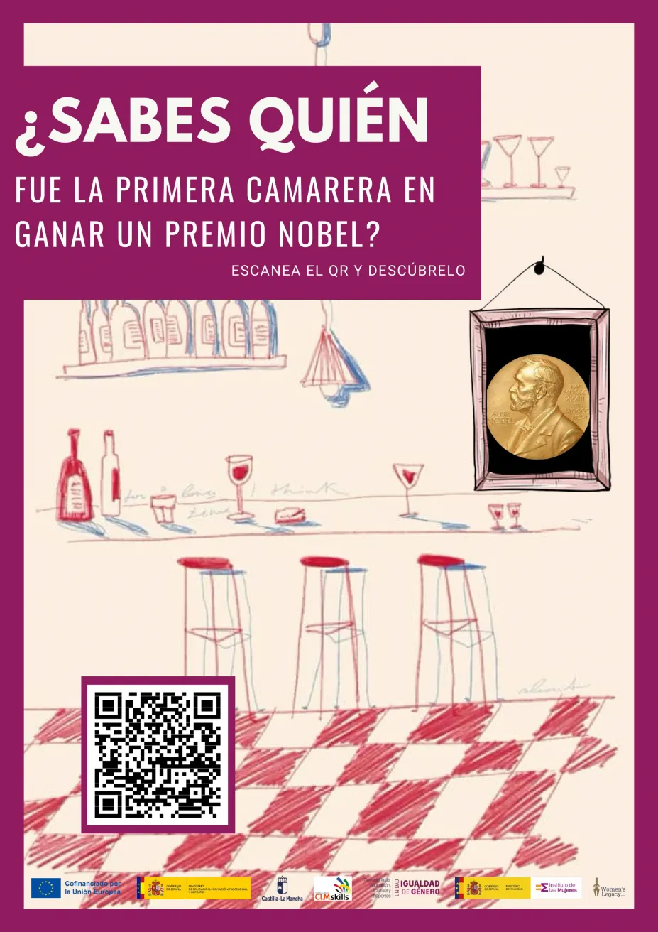 Para resolver la pregunta que aparece en el cartel se accede al QR de la Plataforma Women´s Legacy, el Proyecto Europeo que contribuye a la inclusión de las mujeres protagonistas de la historia y la cultura y su legado en los contenidos educativos. La plataforma Women´s Legacy ofrece además, cinco productos intelectuales en formato digital, accesible y gratuito con la finalidad de facilitar y fomentar la transmisión a las aulas de una cultura completa y verdaderamente universal que recupere el patrimonio cultural europeo y que ayude a la erradicación de las desigualdades de género desde la base.
